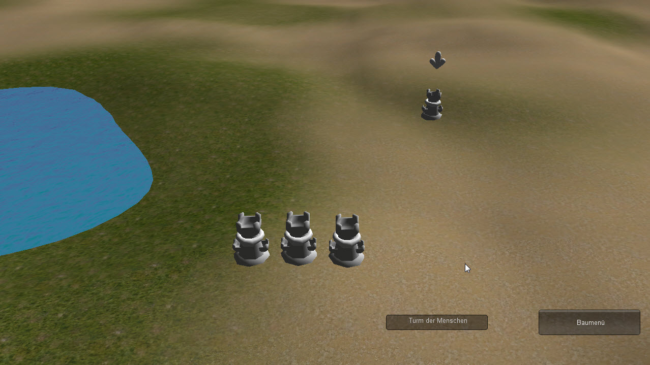 Türme können gebaut, selektiert werden und schießen... also mit momentan der ersten Waffe.