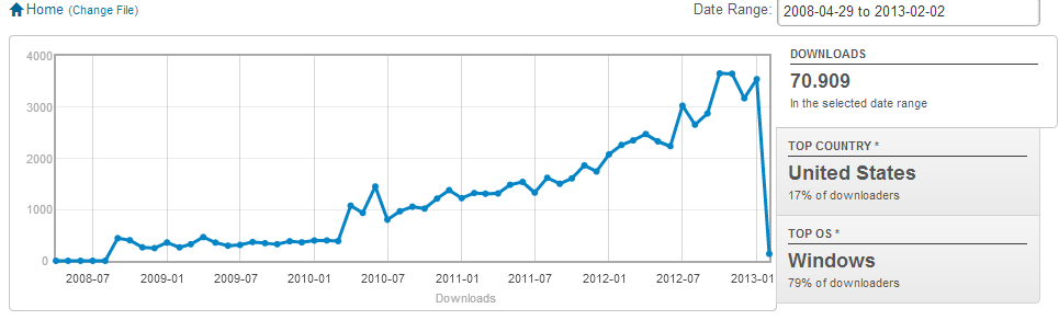 Es besteht kein Zweifel: wir werden immer populaerer. Mittlerweile bringt die durchschnittliche Woche 800 Downloads, Zugriffe ueber Package-Repositories sind ohnehin unzaehlbar.