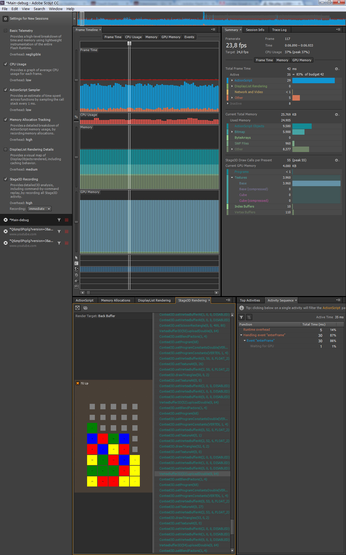 Habe gerade das erste mal Adobe Scout ausprobiert. Man kann sich jeden Frame-Aufbau Schritt für Schritt genau anschauen und tausend andere tolle Dinge sehen. Macht richtig Spaß damit sein Projekt zu untersuchen. Mein gerade neulich erst vertikal aufgestellter zweiter Bildschirm ist wie dafür gemacht :).