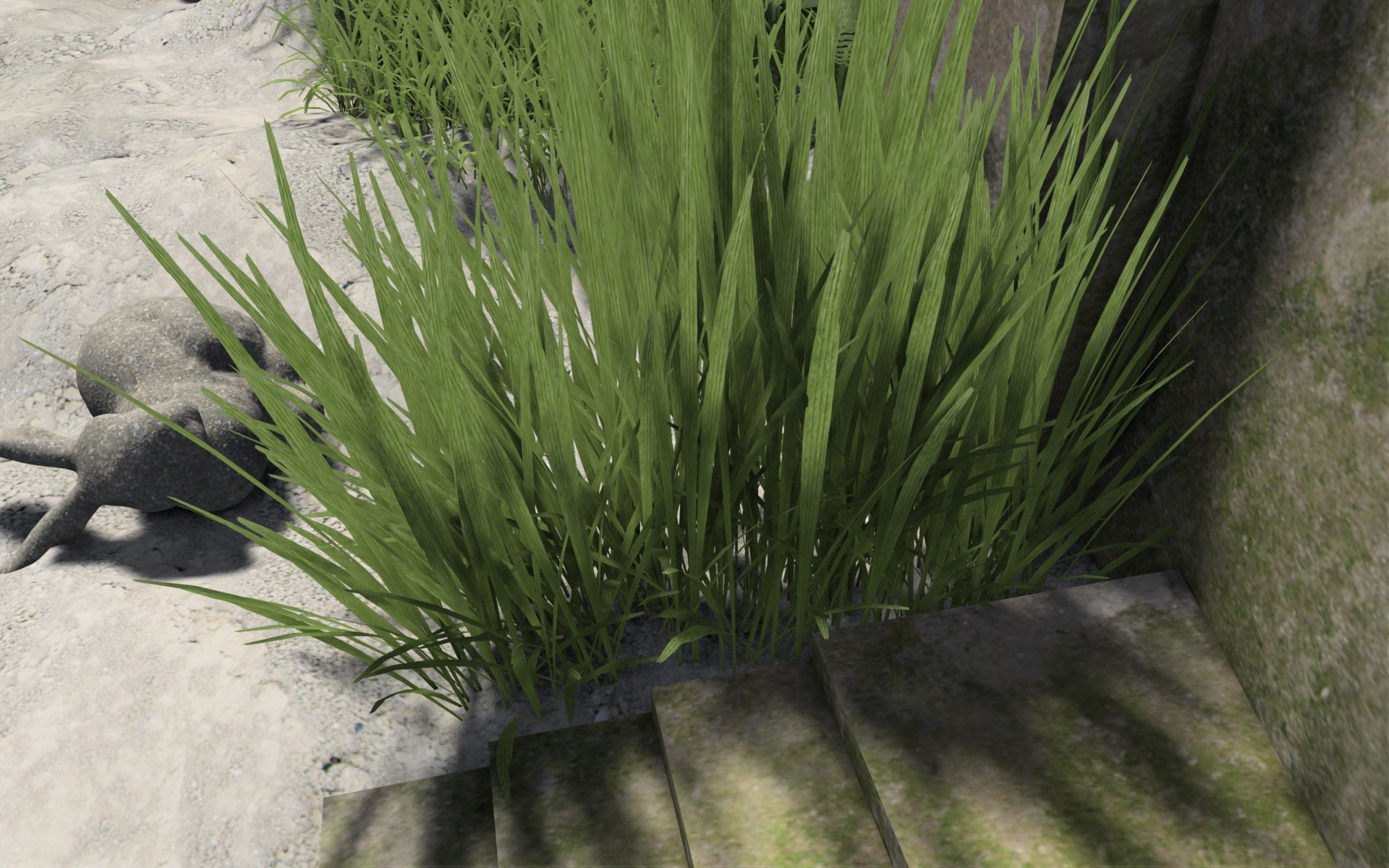 - Was noch fehlt ist die optische Einheit zwishen Vegetation und Untergrund. Sieht momentan noch stark reingesetzt aus.