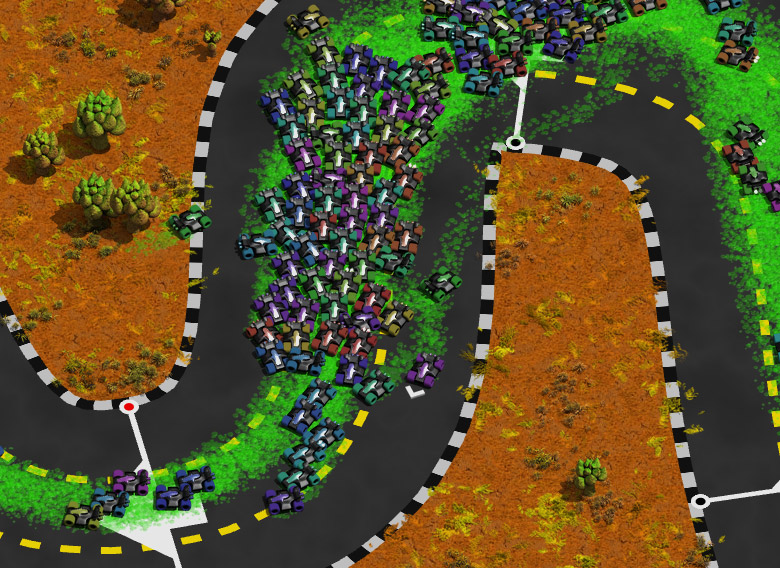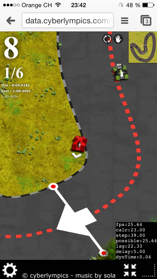 hab inzwischen wieder eine neue version hochgeladen, die fast ausschliesslich webgl verwendet. die streckenpunkte leuchten jetzt korrekt auf, was das fahren erleichtert. dafür fehlt der countdown, den muss ich noch umstellen, oder mir was anderes einfallen lassen.