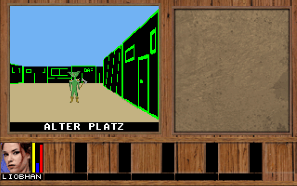 Steuerung: Bewegen tut man sich mit den Richtungstasten, Gebäude bzw. NPC verlässt man mit [Return], bei der "Ja/Nein"-Frage antwortet man mit [J] oder [N], bei den anderen Wahlmöglichkeiten drückt man die Ziffer der Wahl.