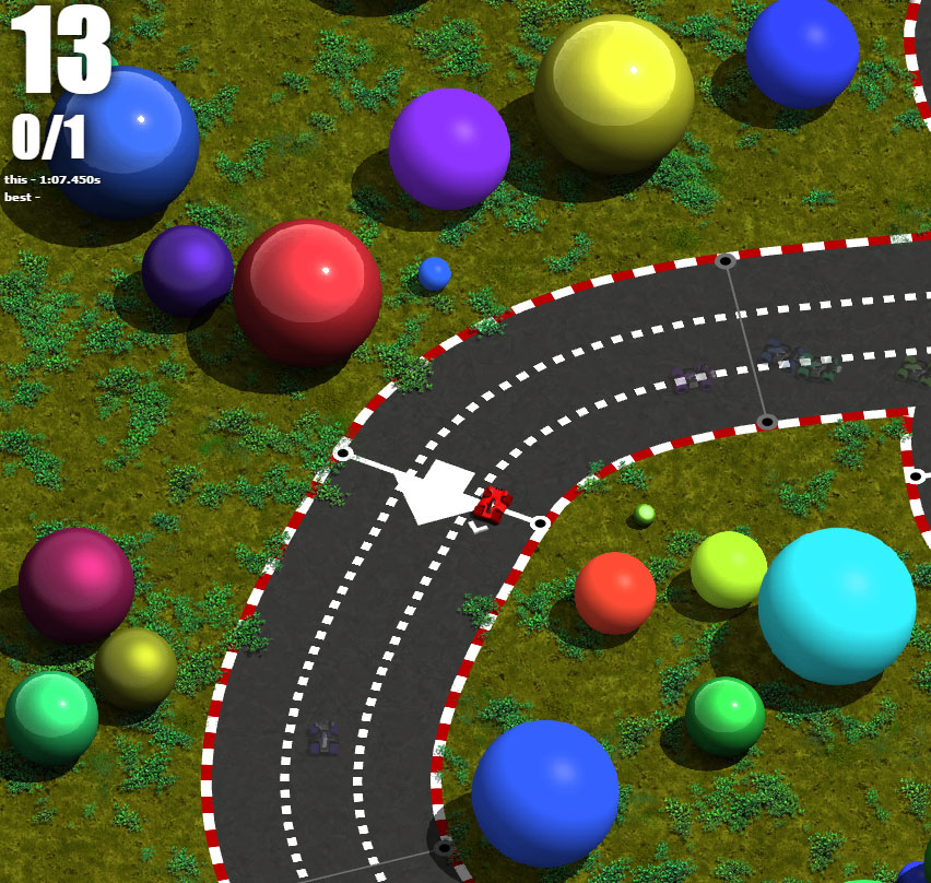 war die letzten zwei tage äusserst fleissig (habe sowas wie ferien). ein kollege von mir hatte die gute idee, man könnte doch die strecken zeichnen. grundsätzlich stand dieser idee nichts im weg. aktuell werden die strecken aus zufällig platzierten punkten zusammengebaut, bei gezeichneten strecken kann der zufall weggelassen werden. die ersten resultate waren ziemlich witzig, pro erfasstem pixel gab es einen checkpoint. die ki hatte damit keine probleme, aber optisch ein chaos. ich musste also einen algorithmus finden um die gezeichnete strecke sinnvoll zu vereinfachen. ich habe ein bisschen rumgepröbelt aber dabei kam nur blödsinn raus, also googeln... folgendes habe ich gefunden (Visvalingam’s algorithm): http://bost.ocks.org/mike/simplify/ es gibt auch noch code dazu, aber ich habs dann doch selbst umgesetzt. das zeichnen hat mir spass gemacht und ich hab versucht auch ein paar detailiertere sachen zu machen. da hats dann gehapert. bislang waren alle strecken schön gekurvt, keine ecken. ich wollte aber ecken, weil sonst ne katze ganz schön blöd ausschaut. also musste ich meinen alten bezier-kurven code anpassen, was erstaunlicherweise viel besser funktionierte als ich erwartet habe. ich bin früher schon mal daran gescheitert, nur weiss ich nicht wieso. mit der katze wars natürlich nicht getan. richtig bescheuerte strecken mussten her. natürlich gabs auch wieder neue probleme. ich habe alte streckenfehler wieder entdeckt, die ich bisher nie erklären konnte. damals hatte ich übelste workarounds geschrieben, weil ich nicht wirklich verstand was passierte (evtl. weiss ich es auch jetzt nicht). die streckenfehler konnte ich schlussendlich auf einen rundungsfehler in einer vector-winkel-funktion zurückführen, bei der ich acos verwende. acos mag nur den bereich [-1,1] für alles andere gibt es NaN. schnell korrigiert, lange gesucht. damit wars aber nicht getan, mit der streckenkorrektur. bei scharfen kurven wurde die aussenlinie des belags nicht schön berechnet (schon seit ewigen zeiten). meine vermutung lag bei einer bezier-interpolations-funktion. natürlich war sie nicht dokumentiert und ich habe grosse zweifel, auf welcher wissenschaftlichen basis ich diese funktion geschrieben habe. ich vermute, ich hab sie mir aus dem gesäss gezogen. naja. ich habe mal wieder mr. google gefragt: http://www.benknowscode.com/2012/09/pat ... _9742.html und habe das dann nachgebaut. funktionierte nicht auf anhieb, aber jetzt dafür viel besser als das komische zeug von früher. ein anderes problem dass mich schon länger gestört hat: wenn ein extra aufgesammelt wird, zeige ich es oben links an. allerdings ist es mühsam das extra anzuschauen und gleichzeitig zu fahren (im fullscreen). ich habe mir also gedacht, ich zeige das extra über dem fahrzeug an. dazu musste ich wieder neue engine-funktionen schreiben, einzelbilder anzeigen ist schwerer als es sein sollte... (muss ja alles in den texture-atlas, ausserdem bilder runterskalieren, etc.). habs jedenfalls hinbekommen und konnte sogar noch ein bisschen was animieren und am gesamten extra-sammel-auslöseverhalten verbessern. die extras werden jetzt eingeblendet und beim auslösen ausgeblendet. dauert jeweils 0.2 sekunden. also dauert es minimal 0.4 sekunden bis ein neues extra aufgesammelt, bzw. 0.6 bis ein zweites ausgelöst werden kann. das problem ohne diese verzögerung war, dass ich immer die extras sofort ausgelöst habe, damit ich ein weiters bekomme. so konnten 3+ extras in hohem tempo ausgelöst werden, was taktisches verhalten zerstört hat. mario-kart hat vermutlich um dem vorzubeugen diese slot-machine anzeige, bei der das extra nach dem aufsammeln erst bestimmt wird. IST EIN GIF, anklicken für animation (weiss nicht wieso das bei dem hier nicht geht...)