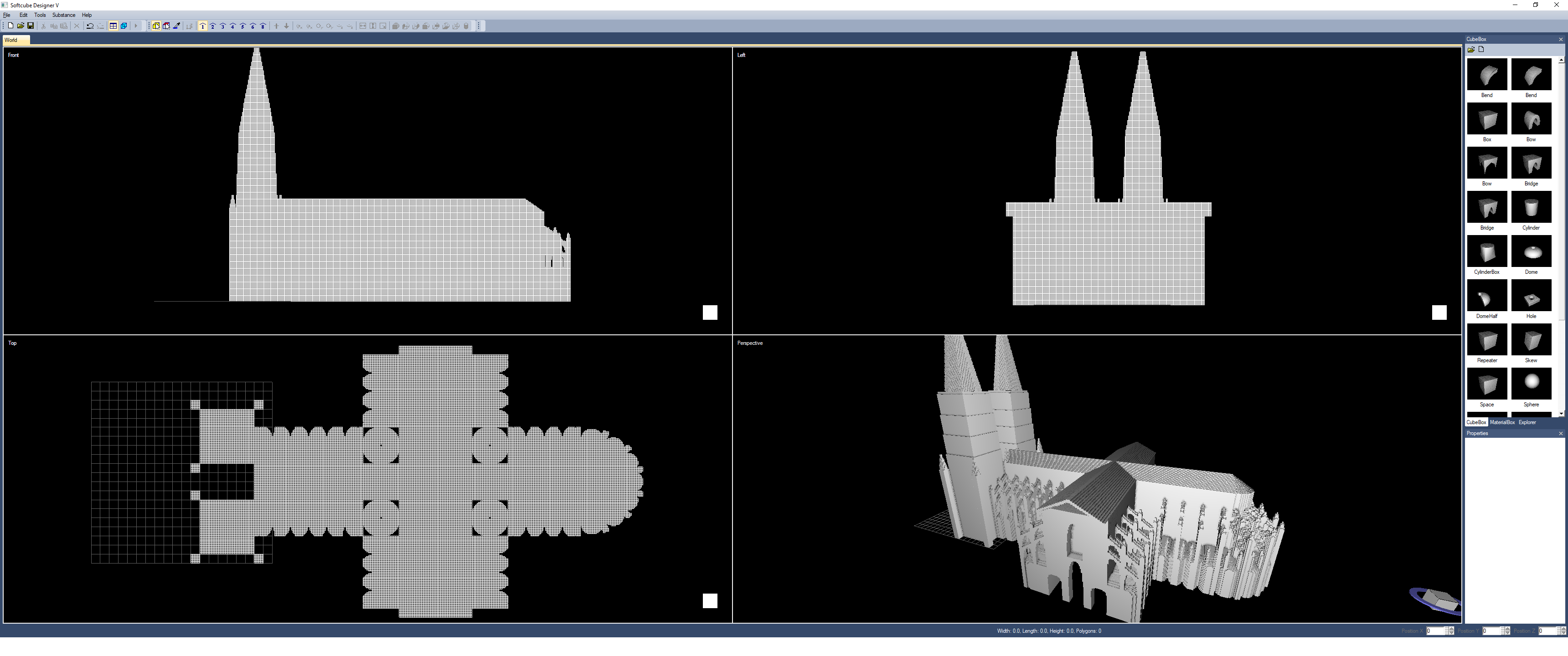 Hier mal ein Screenshot der den Kölner Dom darstellen soll. Das Voxeln geht ziemlich zügig. Leider braucht meine MeshStruktur ziemlich viel Speicher, die Voxel selber fallen kaum in das Gewicht. Da ist also noch Optimierungesbedarf. Vielleicht erzeuge ich direkt InputBuffer ohne Mesh. Dafür ist die neue Version deutlich schneller.