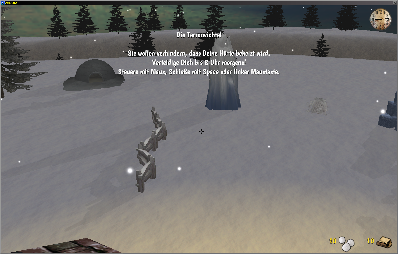 Somit heißt es tagsüber Brennholz sammeln und Schneebälle aufmunitionieren, des Nachts auf dem Dach der Hütte den frechen Wichteln auflauern, und ihnen eine Portion Schneebälle verpassen.