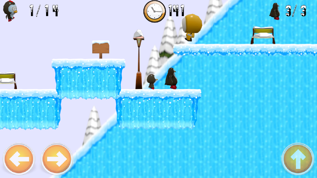 Little Penguins ist ist ein klassisches Jump And Run Spiel in dem man kleine Pinguine einsammeln muss.