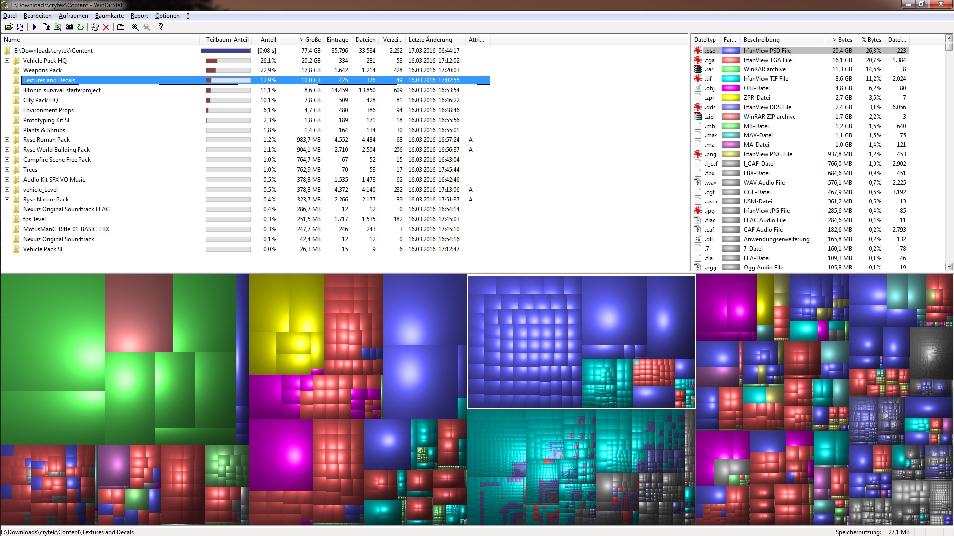 Nehmen wir nochmal das Pack "Textures und Decals" (markierte Bereich). 10,75 GB Texturen, da denkt man erstmal, wow! CG-Textures wird damit überflüssig.