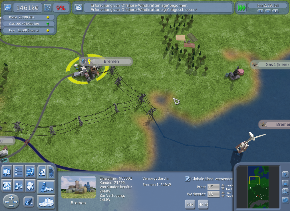 Der Spieler kann Kraftwerke bauen, Resourcen fördern, mit Resourcen handlen, neue Technologien erforschen, Politischen Einfluss erkaufen, und vieles mehr.