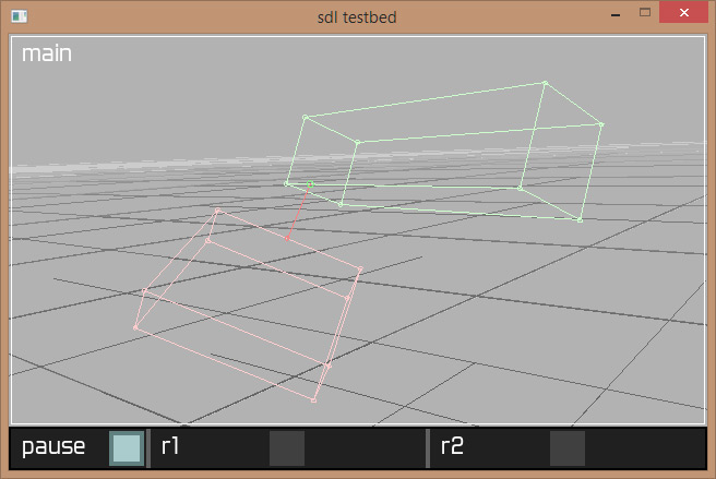 Finden der kürzesten Distanz zwischen den Oberflächen beliebig ausgerichteter Boxen. Noch im experimentellen Anfangsstadium. Basierend auf einer eigenen Grundidee, aber so viele Möglichkeiten gibts ja nicht das Problem zu lösen, ich denke mal es wird recht ähnlich zu GJK sein (ein iterativer Ansatz). Das muss sich jetzt natürlich erst noch in Masse bewähren.