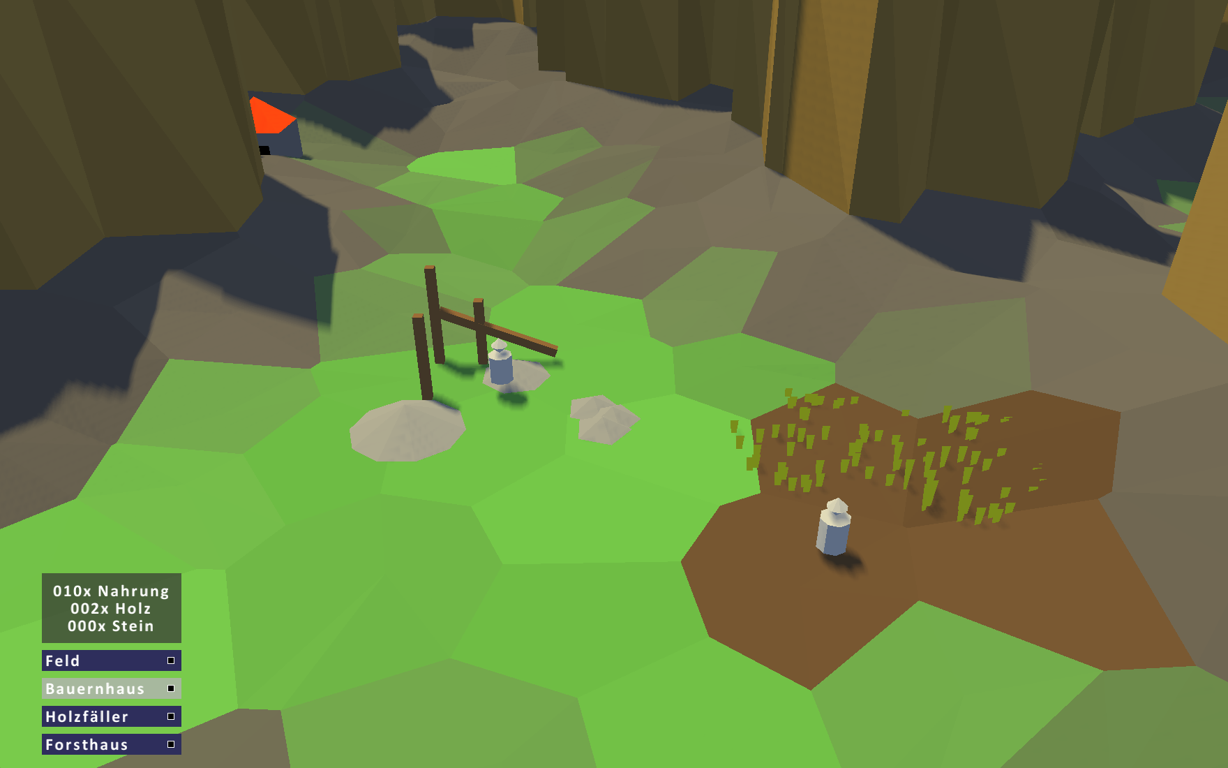 Aber theoretisch wollte ich, dass der Turm wachsen kann, so als ne Art Highscore. Das funktioniert aber nur, wenn die Spielmechanik es irgendwie zunehmend schwieriger macht, weiter am Turm zu bauen. Aktuell kannst Du halt ein Mini-Reich aufbauen und bist so ab 32 Siedlern und vier bis fünf Holzfällern, Steinbrüchen und vielleicht zwei Forsthäusern vollständig eingerichtet, dass das Spiel weiter läuft, bis alle Felsen abgetragen wurden. Das ist damit nur noch ein Geduldstest und kein Spiel mehr. Ich habe noch keine Idee, was ich daran ändere.