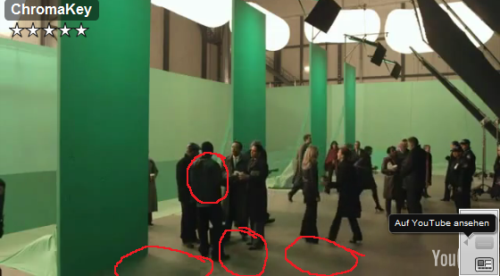 Was du meinst ist der sogenannte "green spill" bzw. "blue spill" Effekt. Dabei wird das Licht mit dem der Greenscreen bzw. Bluescreen beleuchtet wird reflektiert. Dieses Licht sieht man meist als grünen oder blauen "Halo" um die Schauspieler. Beim Chromakey wird ja im Prinzip eine bestimmte Farbe (meist blau oder grün, seltener schwarz und weiß) aus dem Bild herausgerechnet bzw. transparent gemacht. Je nachdem wie gut der Green-/BlueScreen ausgeleuchtet war, muss man einen mehr oder weniger großen Toleranzbereich zu der Grundfarbe addieren, um alle möglichen Schattierungen der Farbe auch zu erwischen. Das führt dann dazu, dass man auch die Ränder der Schauspieler mit wegschnippelt, wenn man einen zu großen Spill-Effekt hat. Um das zu vermeiden gibt es mehrere Möglichkeiten, die auch in Kombination eingesetzt werden können.Zudomon hat geschrieben:Was ich bei solchen Bluebox-Effekten faszinierend finde, dass da das gestreute Licht, welches diese blauen und grünen Vorhänge werfen, nicht zu sehen ist. :o Weiß jemand, wie man sowas macht? Und wiso fällt es bei den Haaren nicht auf, wenn das professionelle Studios machen?