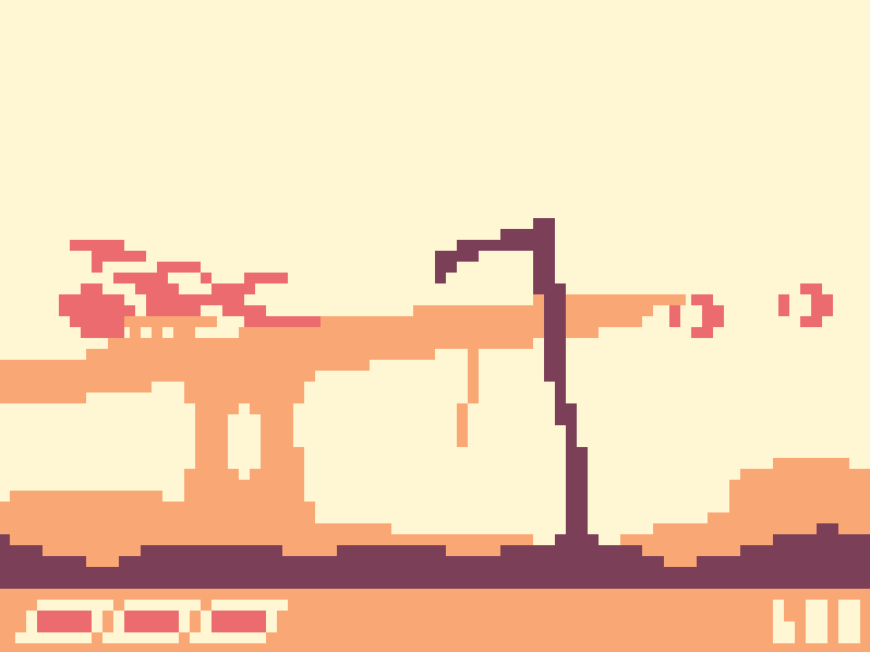 Der Grafikstil mit den 4 Farben ist überraschend stimmig durch das Wastelands-Setting, gefällt mir! Die Steuerung mit nur einer Taste ist gewöhnungsbedürftig, aber funktioniert gut. Was mich überrascht hat: Ihr habt einige "Tunnel"-Sequenzen drin, wo man keine Gegner in dem Sinne hat, sondern dem Level ausweichen muss.