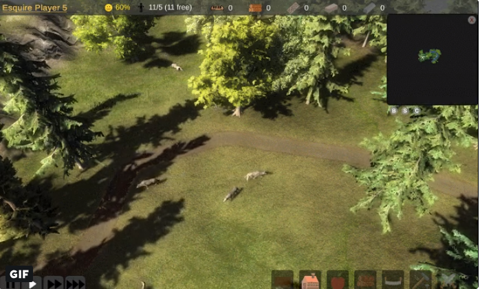 Desweiteren haben wir begonnen, den Anfang des Spiels mit (pre-pre-alpha) Testern zu iterieren. Eine Neuerung die im Zuge dessen hinzu kam sind wilde Tiere, die die Welt etwas beleben und den Spieler am Anfang auf Trab halten. Geplant sind auch "positive" Incentives die zur, z.b. freie Farmen die den Spieler mit Extra Nahrung versorgen.