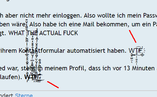 Als ich den Fehler korrigieren wollte, konnte ich mich aber nicht mehr einloggen. Also wollte ich mein Passwort wiederherstellen. Dabei wurde dann aber gesagt, dass noch gar kein Passwort vergeben wäre. Also habe ich eine Mail bekommen, um ein Passwort zu vergeben, habe das getan, und … das hat einen DRITTEN Account angelegt. WHAT THE ACTUAL FUCK