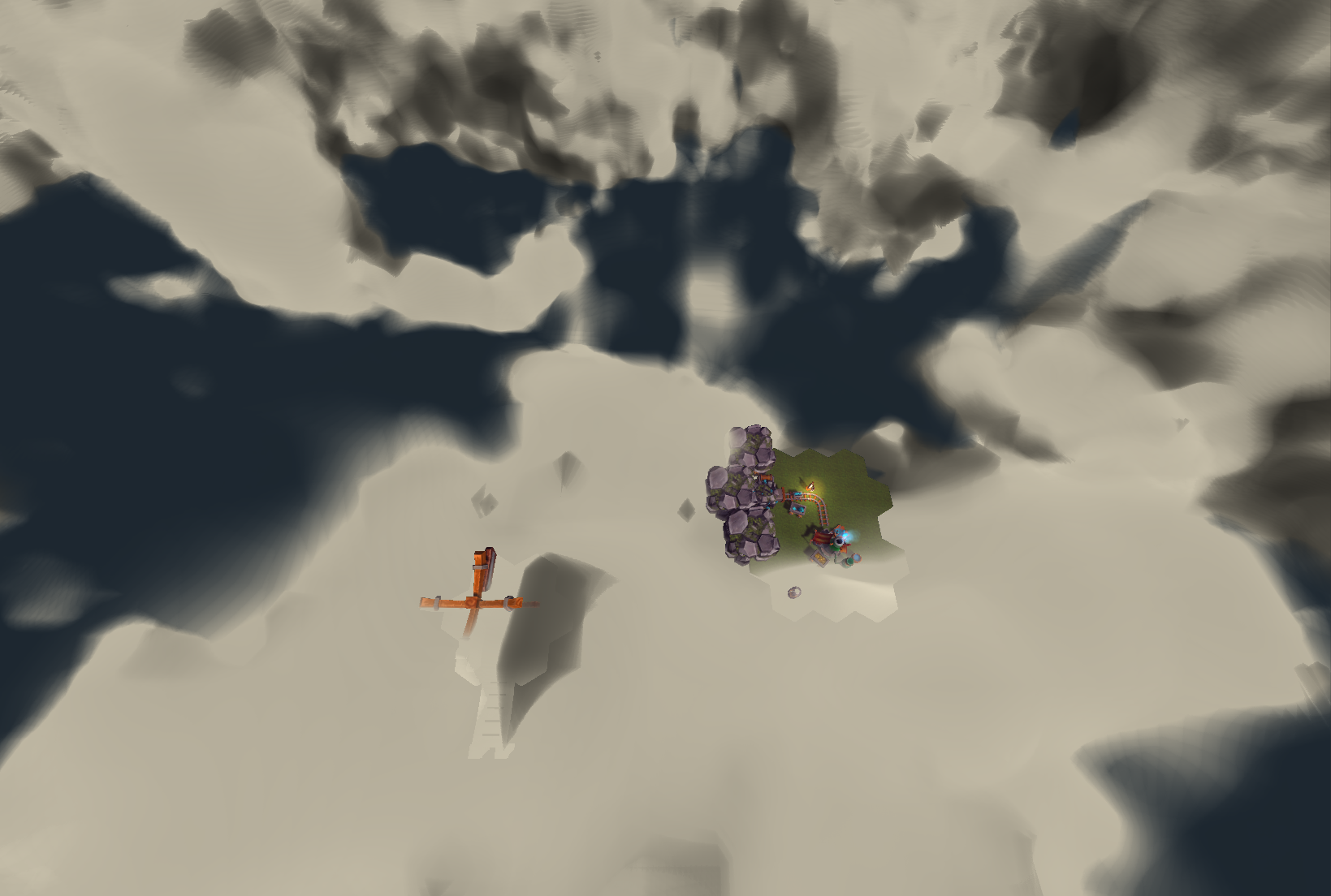 Wenn man ein neues Gebäude platziert wird jetzt zuerst ein "Bauplatz" angezeigt. Dafür gibt es jetzt für Gebäude eine neue Eigenschaft "Status". Da ich noch nicht genau weiß, wie ich jetzt das Ressourcen zum Bauplatz transportieren möglichst elegant umsetze hab ich angefangen mit Wolken herum zu Spielen... hier mal ein Screenshot um einen Eindruck zu vermitteln :)