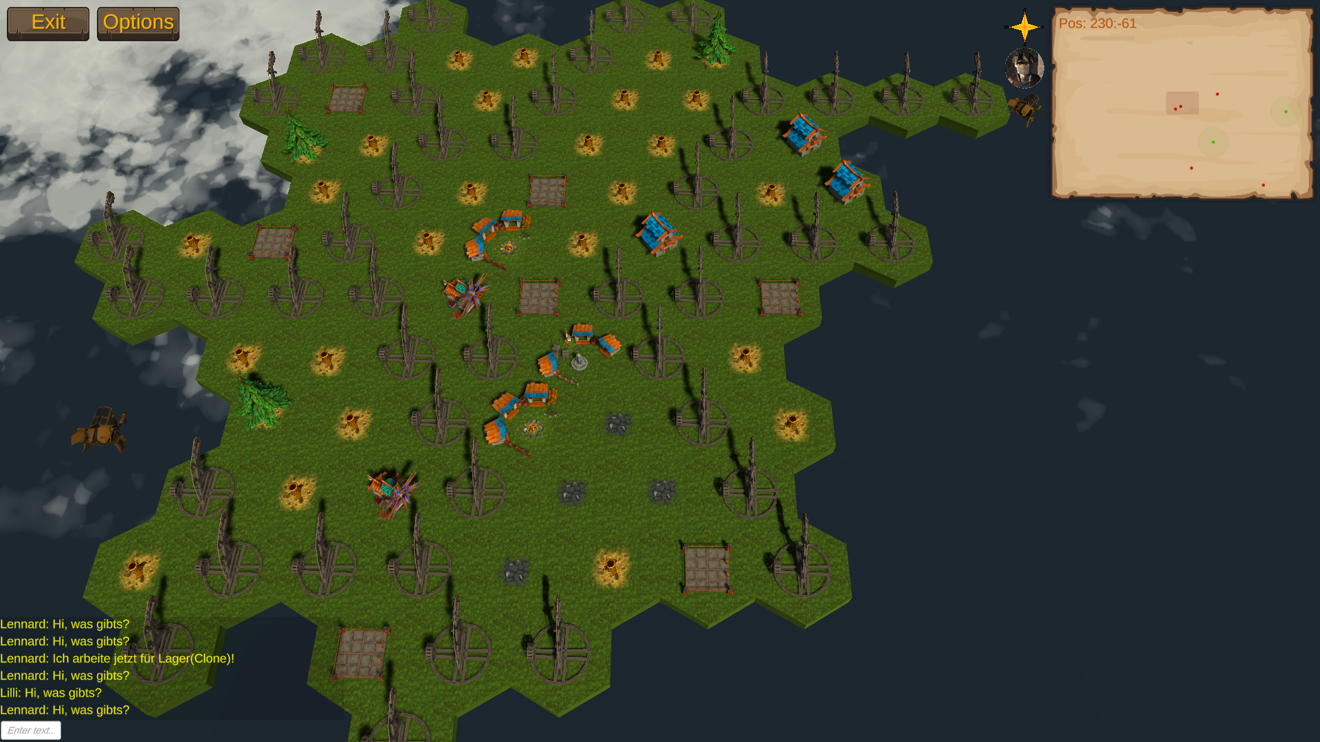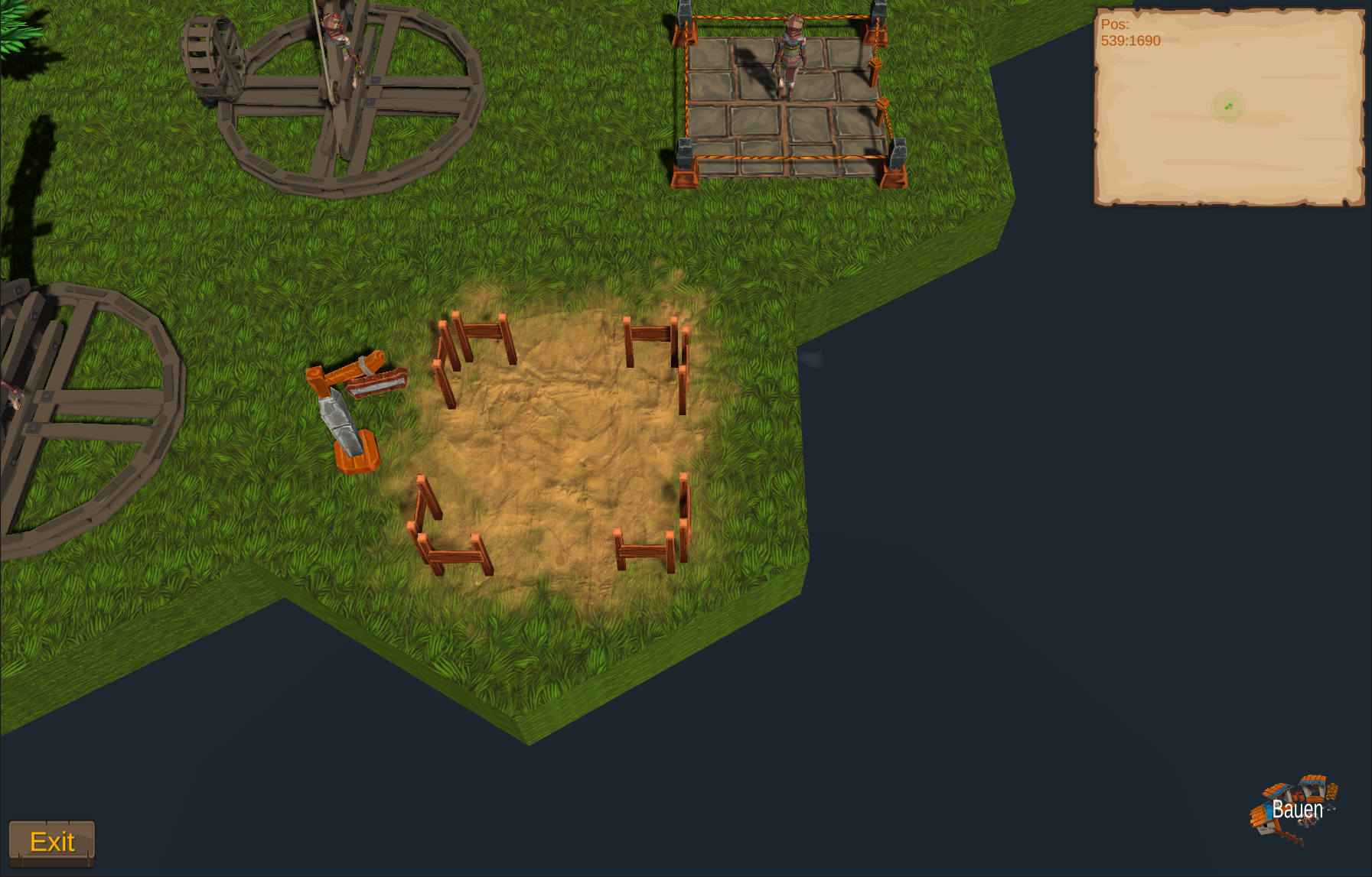 - Alle Einheiten sind nun auch in einer eigenen Klasse, die nur für das Verwalten von Einheiten zuständig ist, mit Hilfsmethoden wie z.B. GetItem(Baum), hier sucht die Einheit automatisch nach dem nähstem Item (z.B. "Baum"), holt das Item und meldet dem Gebäude, für das die Einheit arbeitet, wenn sie zurück ist...
