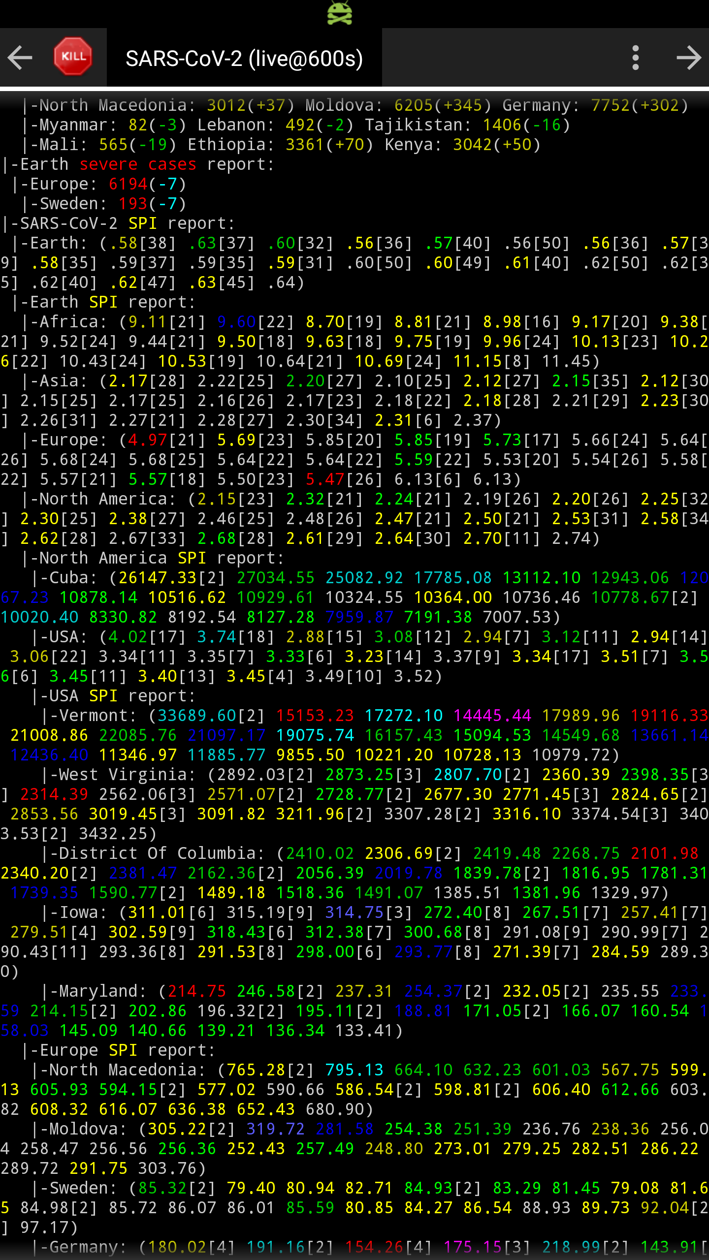 Ich habe (fast) keine Änderungen vorgenommen und es einfach arbeiten lassen. Zu dem größten (Programmier)Fehler gehört wohl die Limitierung auf 32(16)Bit in der Ganzzahlarithmetik (es gibt einen netten Trick, wie man diese Größe ermitteln kann) durch die verwendete Shell und die damit einhergehenden zahlreichen Konsequenzen. Ansonsten scheint es recht gut zu funktionieren. Zur Erinnerung: ich berechne die durchschnittliche Zeit zwischen zwei beobachteten Infektionen und interpoliere arithmetisch ausgehend von der Gegenwart in die Vergangenheit. Eine Abweichung von der Zeit zum Vortag kann nur dann entstehen, wenn mehr oder weniger Ereignisse beobachtet wurden oder der Zeitpunkt (ich aktualisiere z.B. alle 10 Minuten) der Beobachtung sich geändert hat. Wenn man davon ausgeht, dass die Werte zu gleichen Ländern immer zu gleichen Zeiten auf dem Server landen, dann bekommt man also einen Tagestrend für die Gegenwart angezeigt. Durch das Interpolieren fallen Anomalien (z.B. nachträgliche Beobachtungen) heraus und die Werte werden stabiler.