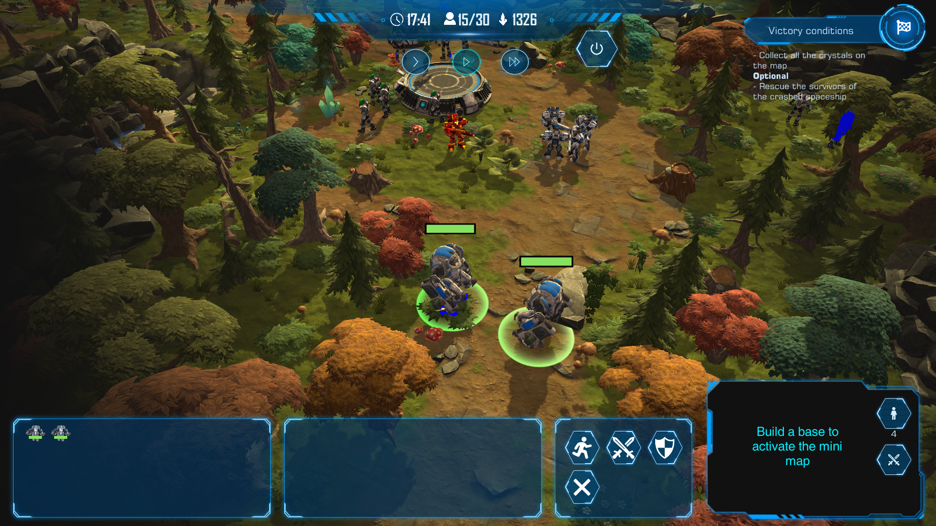 hab das missionsziel nicht verstanden, da ich es nicht lesen konnte. die map hab ich so gut ich konnte abgesucht. alles gebaut, dann nur noch geschütztürme gebaut, weil mehr kann ich ja gar nicht machen??? wurde mit der zeit stockend, also die framerate war nicht mehr so gut. friendly fire find ich doof, vor allem hab ich ja keinen direkten einfluss darauf. nur plötzlich sind meine wenigen einheiten tot.