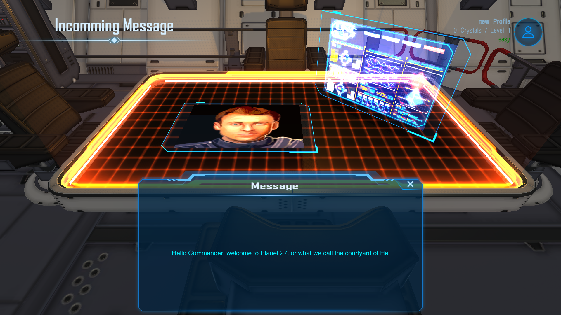 Gefällt mir richtig gut. Intuitiv finde ich die Anfangssequenz bis zum Erscheinen des Menüs. Die Missionsauswahl empfinde ich im Vergleich zum gesamten GUI-Screen etwas klein geraten. Ich denke mal das soll die drehende Pyramide mit den teilweise mit Schloss versehenen Anzeigen darstellen? Evtl. kannst du das ja etwas größer darstellen.