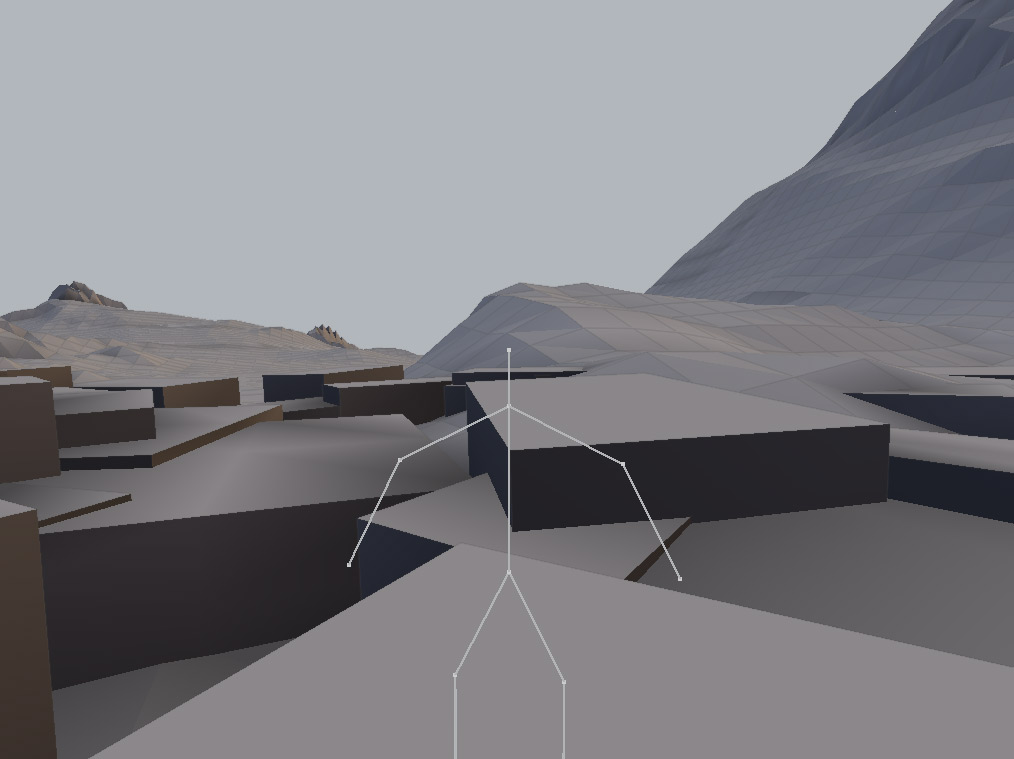 Die einzelnen Prototypen (AO, Ani) waren damals alle noch AIR, dazwischen liegt also auch eine Portierung nach C# mit OpenTK. Einiges ist noch rudimentär zusammengefrickelt und schreit nach mehr Code-Organisation und besserer Usability. Die Stickman-Animation ist noch die alte, etwas asymmetrisch, und als Standpose dient nur die Nullpose. Den Editor dazu habe ich noch nicht portiert. Die Kamera hat noch keinen Collider, mit der 3rd-Person-Intelligenz bin ich erst ganz am Anfang.