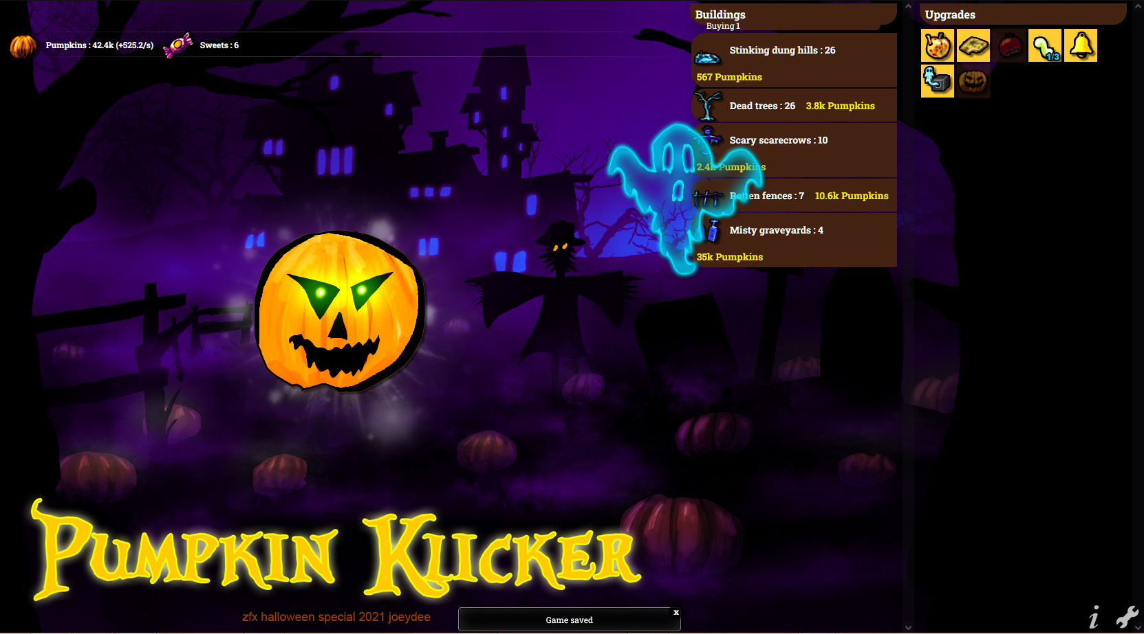 Außerdem erscheinen ab und zu Geister, die eine Ladung Kürbisse oder von Kindern gestohlene Süßigkeiten im Gepäck haben, womit man sich wiederum neue Bauten und Upgrades leisten kann.