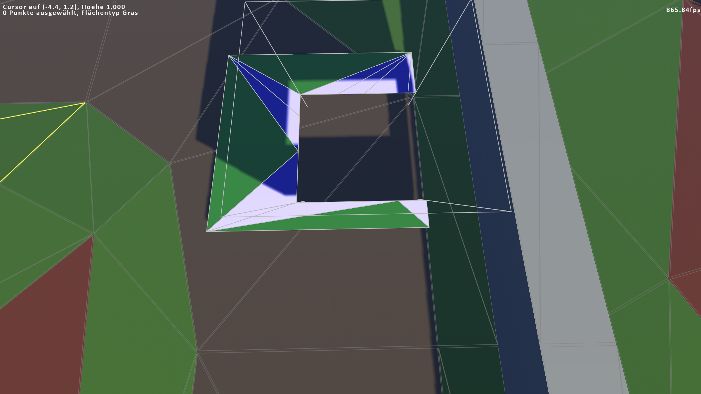 Sieht man nur in nem Bildbetrachter, wo man mal ohne Interpolation reinzoomen kann. Zur Demo hab ich bei dem senkrechten Ding mal die Liniendicke völlig übertrieben. Die überlappenden Enden sehen bei AlphaBlending natürlich Fäkalie aus, bei 100% Alpha merkt's keiner mehr. Ich habe den DepthTest an, daher clippen die Linien dann doch hier und da hart mit dem Boden. Aber bei Dreiecksumrissen funktioniert's schon echt gut. Ich bin sehr zufrieden.
