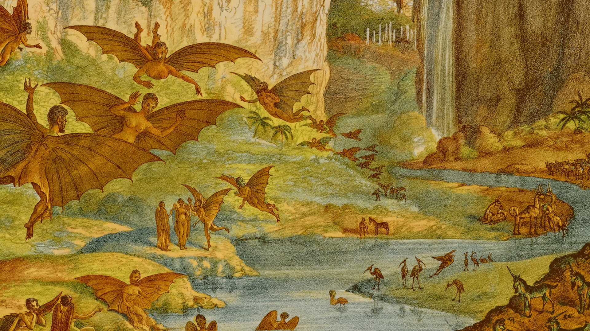 Jemand hatte 1835 behauptet mit seinem tollen neuen Teleskop Mondbewohner sehen zu können. Daraus entstanden dann solche Bilder: