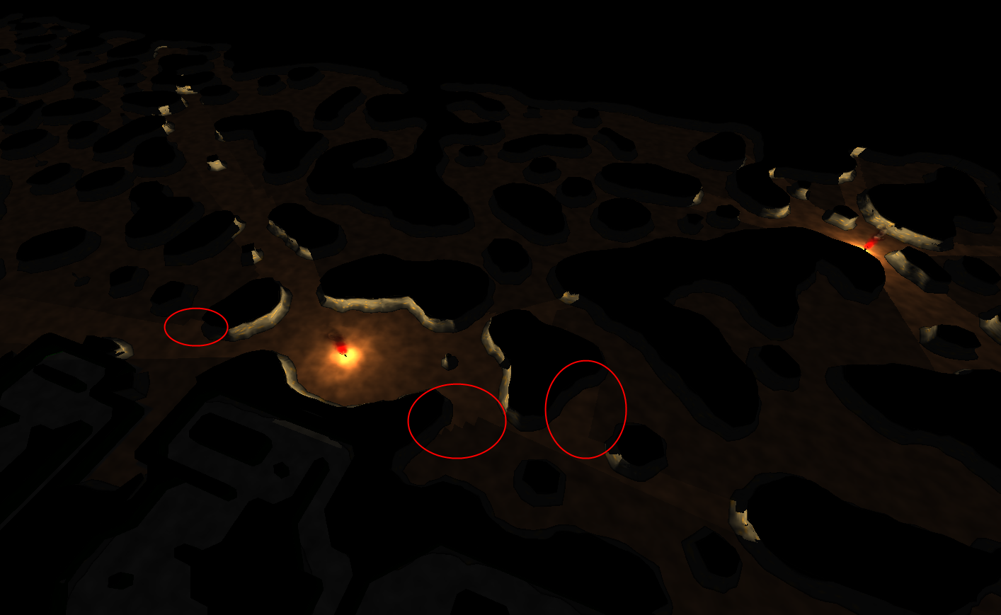 Ich bin nicht zu allzu viel gekommen, aber es gibt jetzt ein rudimentäres Mapsystem und sobald wir die natürlichen Caves per Cellular Automata fertig haben und mit den Künstlichen Dungeons gemerged haben, wird die Karte auch sinnvoller befüllt. Man sieht noch sehr gut, dass die Normalen vom Marching Cubes noch rumbuggen, dass steht aber schon auf meiner virtuellen TODO-Liste, genauso wie vernünftiges Marching Cubes Texturing ;) Durch die fehlerhaften Normalen sieht man momentan sehr gut, dass die Karte aus Kästchen besteht^^