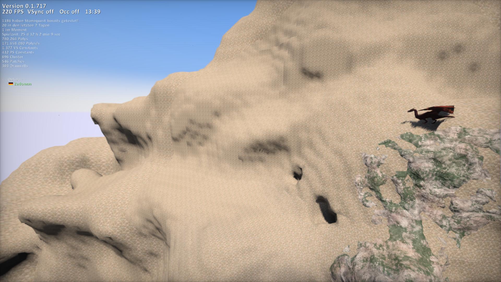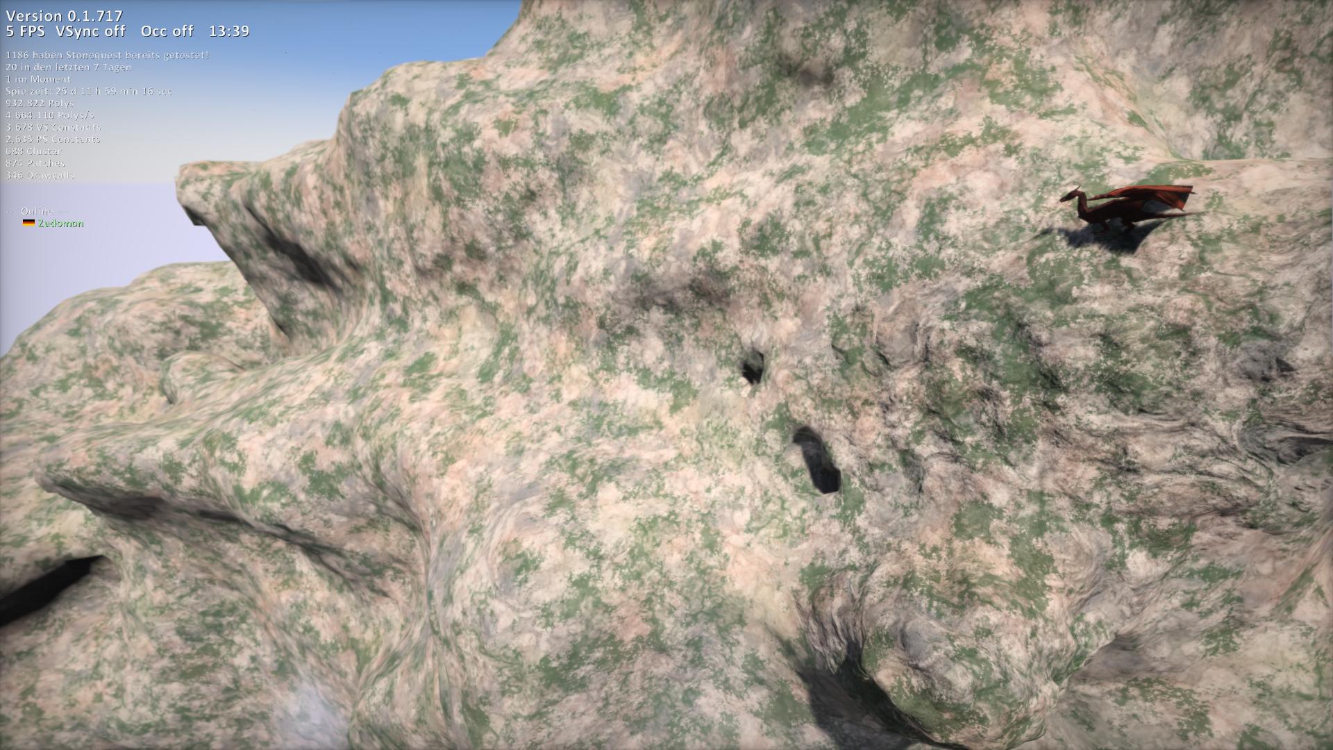 Klappt erstmal nur mit dem Fels. Die Frames gehen von 220 auf 5 FPS runter. Was aber kein Dauerzustand ist.