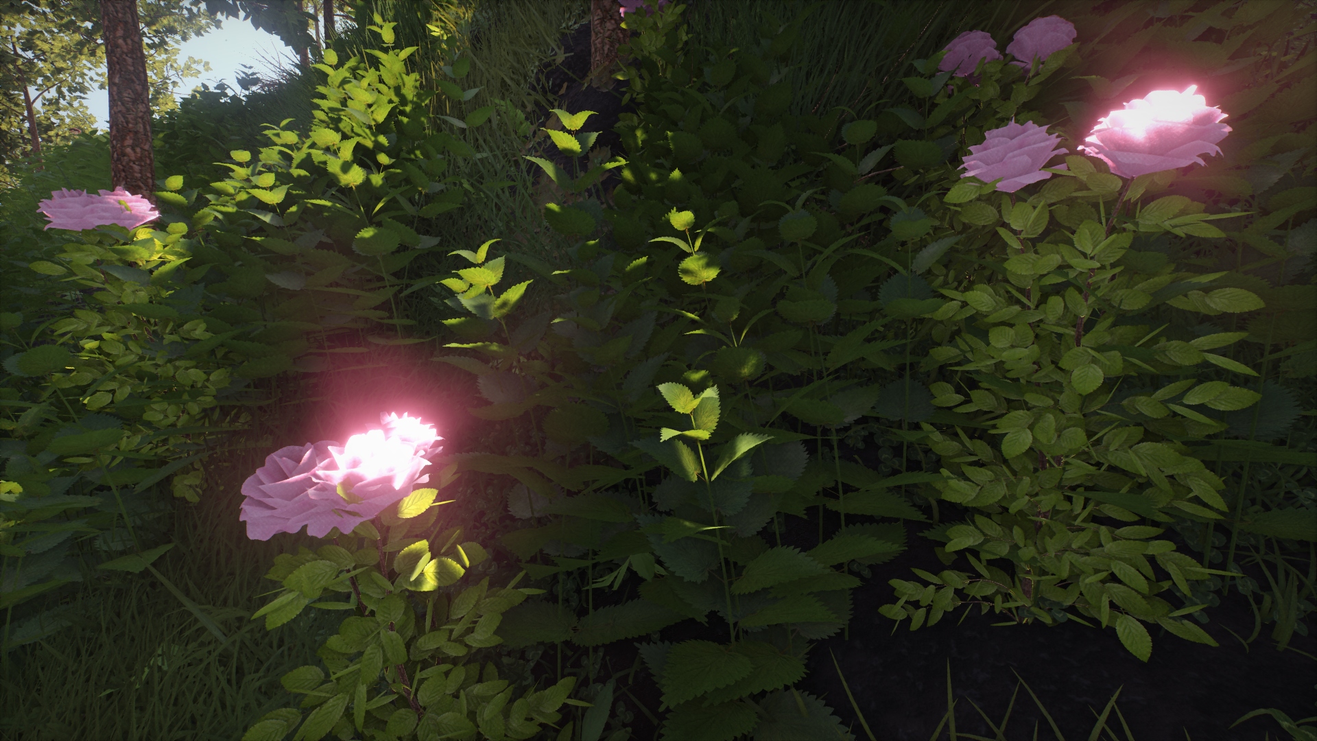 Hier nun noch ein Bild auf ULTRA (=200% Auflösung)... dazu ist jetzt noch ein negativ Bias in den Texturen, damit es schärfer wird. Blatt und Grass Texturauflösung verdoppelt. Das Glare noch etwas verstärkt, die Chromatische Aberation etwas reduziert.
