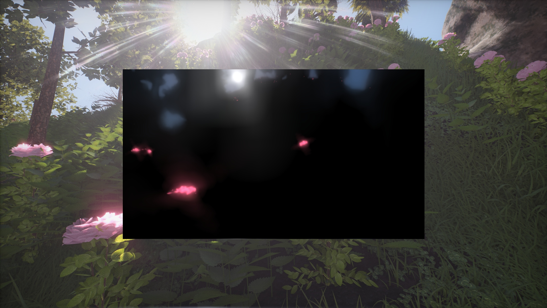 Hier wurde das HDR in Splitterwelten damals präsentiert. Da leuchten die Farne auch, wenn man sich in dunklerer Umgebung aufhält, als wären es Halogenlampen. Da hat niemand gesagt, vielleicht sind die Formeln falsch, eigentlich dürfte man nur den Himmel haben, der Glare erzeugt oder sonst was.