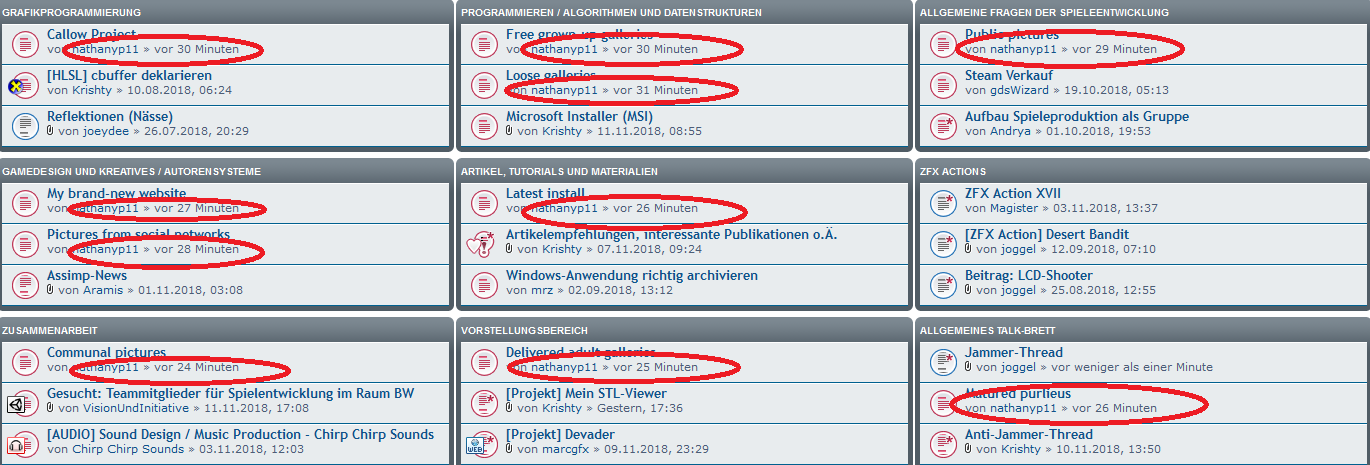 Ich würde auch mal die User Liste durchgehn und zum Beispiel alle User löschen die auf Sex Seiten verlinken. Sex asia gay ist jetzt nicht wirklich die Homepage eines harmlosen users ... https://zfx.info/memberlist.php?start=2400 . Und solche Links werden auch gern dafür verwendet weiter Bots anzuziehn.