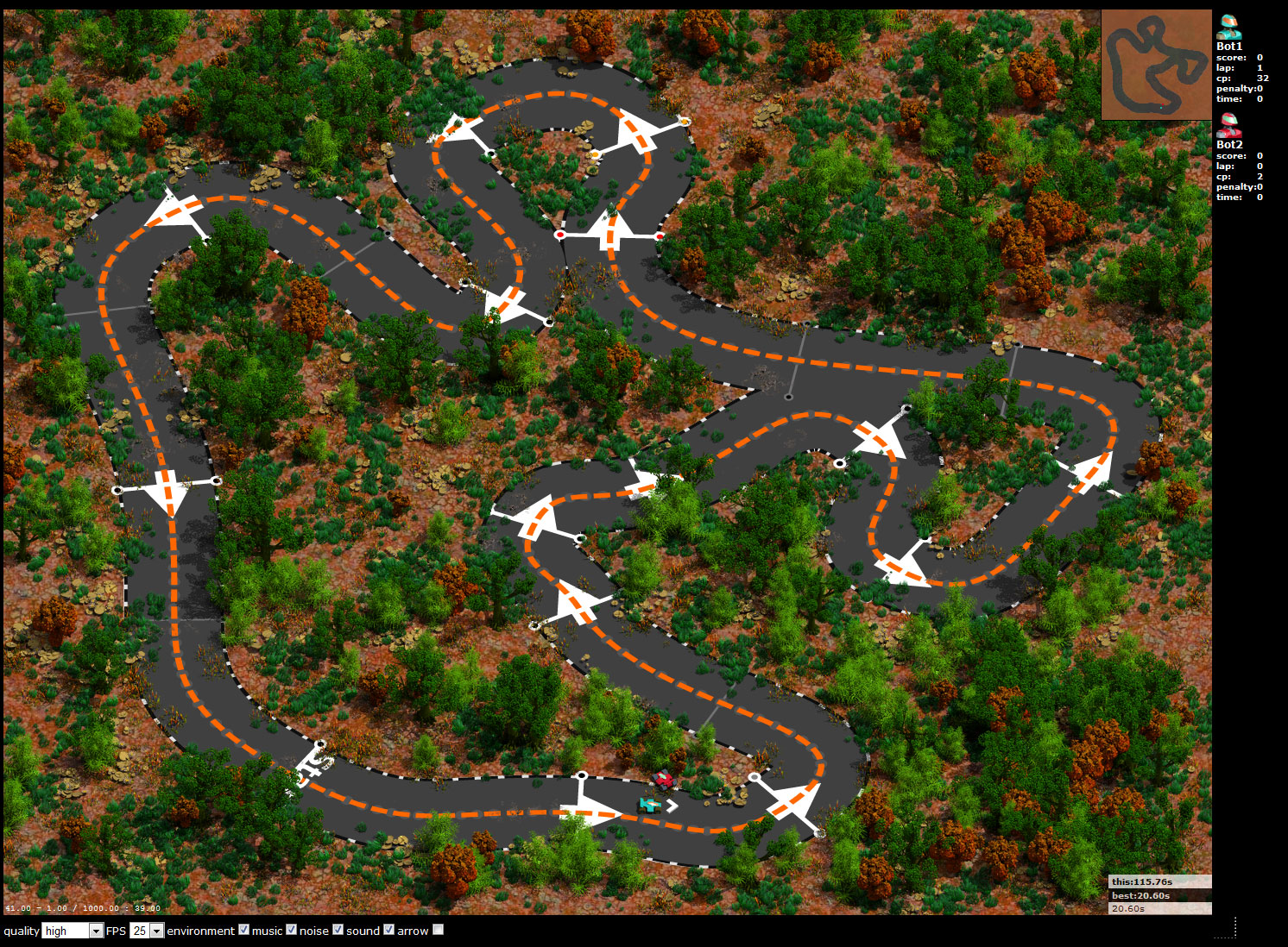 hab mir ehrlich gesagt noch ziemlich wenig gedanken zur spielbarkeit gemacht, es wäre aber sinnvoll mit dem zurücksetzen bei problemen oder einer zerstörung des wagens (letzteres kann im practice/zeitrennen nicht geschehen). vielleicht ne 2sek strafe oder sowas. kommt auf die todo-liste.