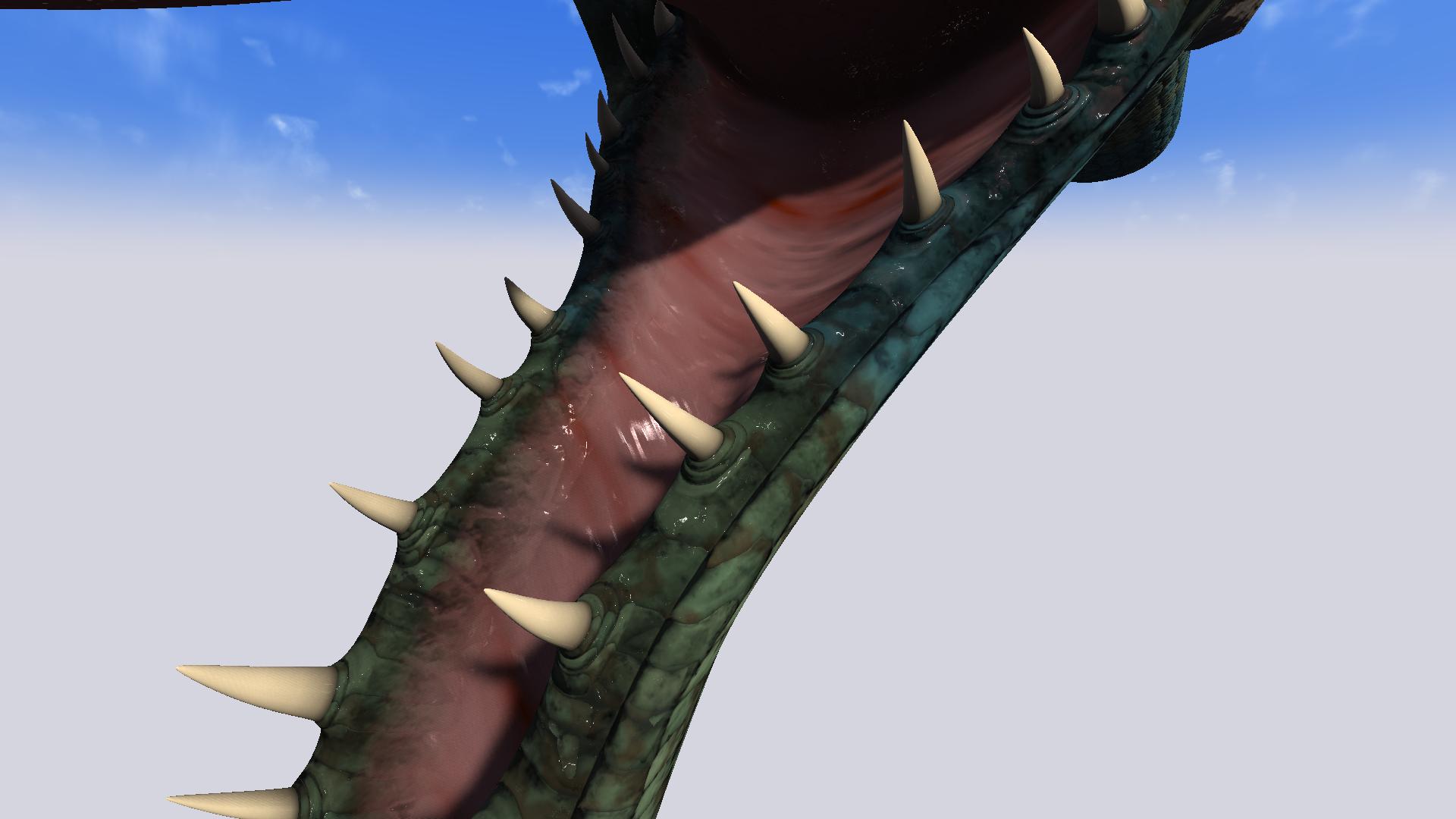 Hier noch zwei Bilder in groß Aufnahme... was man in den screens nicht so sieht ist, dass der Mundraum wirklich Nass ist... war recht einfach zu machen, weil die Engine ja über Deferred Shading Nässe darstellen kann. Außerdem kann ich beim generieren angeben, wie weit der Mund geöffnet ist..
