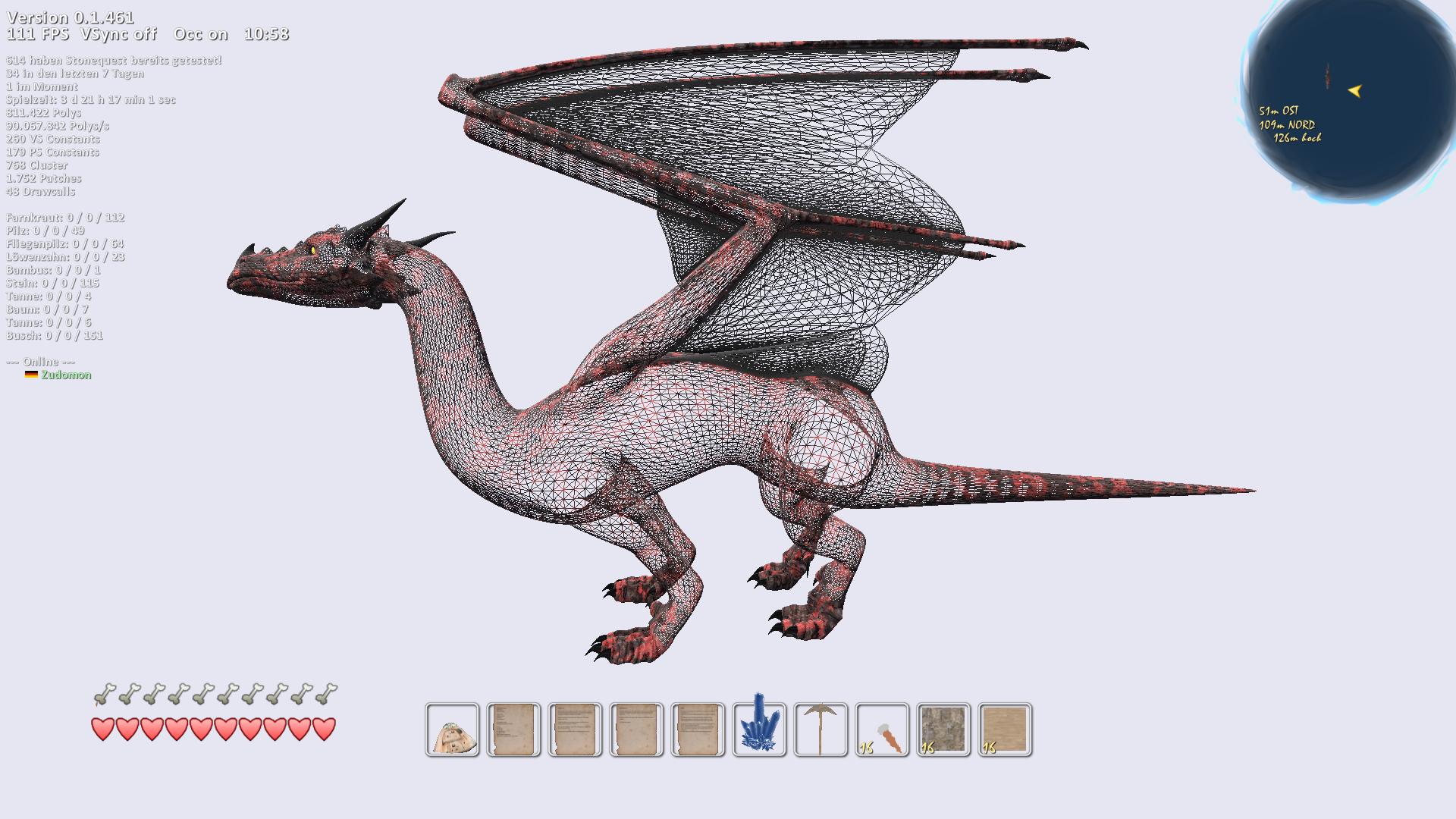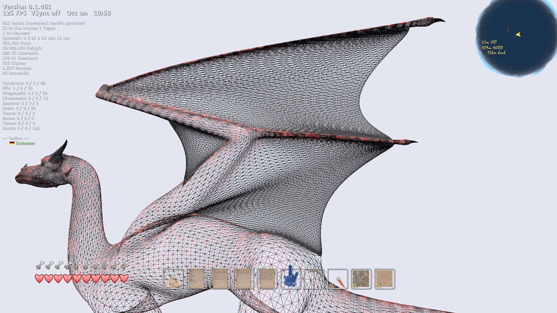 Nichtsdestotrotz halte ich das für sehr wichtig. Denn dieser Drache stellt letztendlich den Schlüssel dar zu den Lebewesen, die es hinterher in SQ geben wird. Er stellt das erste Exemplar meines "Wirbeltiergenerators" dar. Von daher muss ich eigentlich nur einmal so extrem viel Zeit investieren. Auch die Animationen will ich nur ein einziges mal Ausarbeiten müssen. Den Drachen speziell hatte ich mir gewählt, weil ich erstens Drachen extrem geil finde, und zweites, dieser schon so ziemlich alle Aspekte der Wirbeltiere aufweißt. Neben den Gliedmaßen eben auch Hörner (die man bei Hirschen dann erweitern kann) und Flügel, die man sicher auch für Fledermäuse und Vögel verwenden kann...