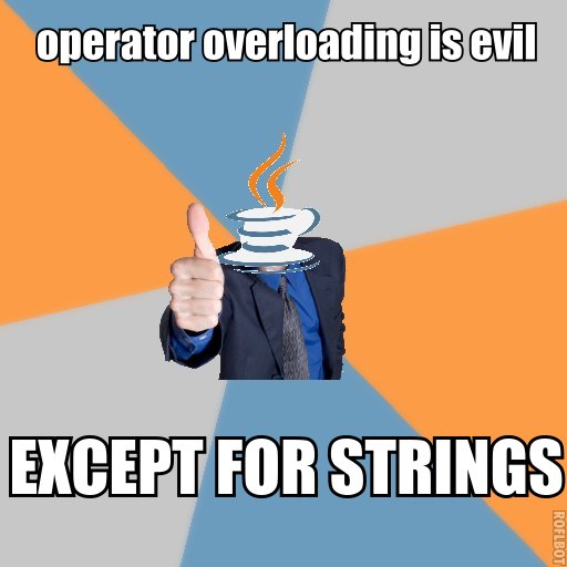 - Operatorüberladung: SRSLY JAVA? Dann kommt so etwas bei raus: x.add(y.divide(y.pow(5).abs(), BigInteger.valueOf(4))). SRSLY.