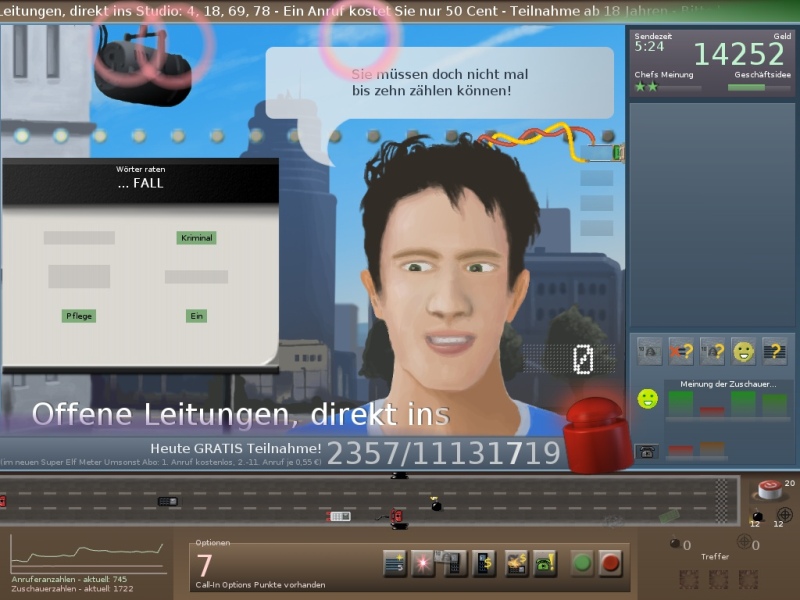 Im "Call-in! Spiel" verkörpert der Spieler den Leiter einer Call-in Show. Das Spiel sollte auf allen Windows-PCs laufen.