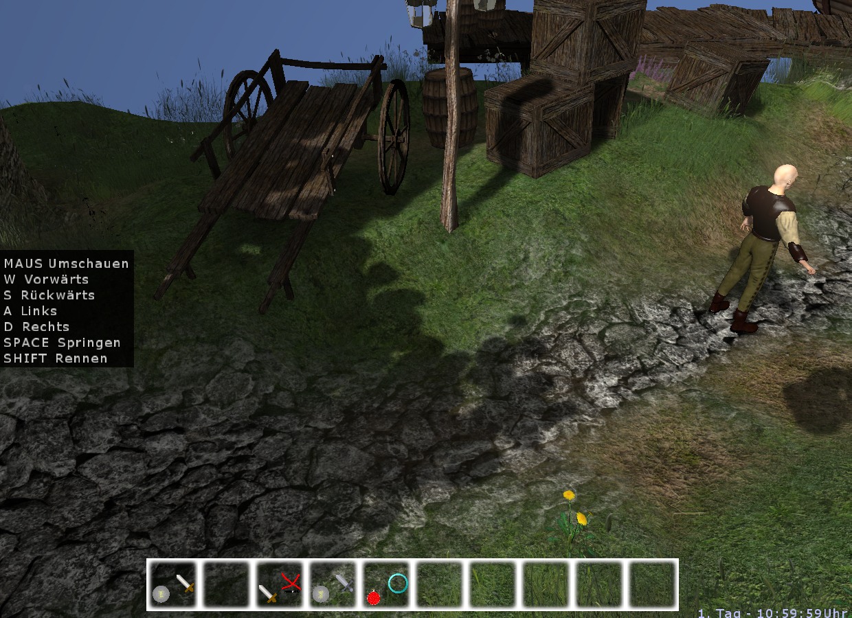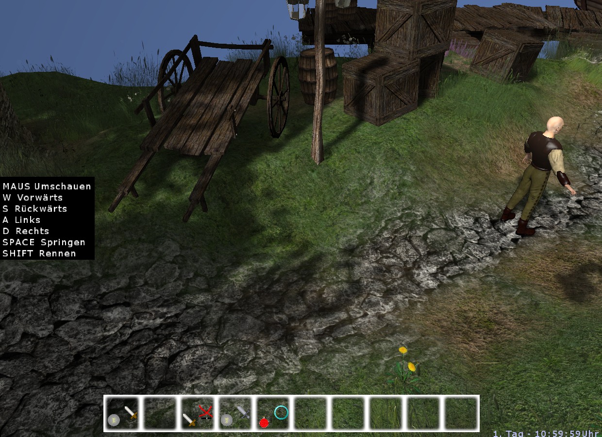 Also Exponential Shadow Mapping. Sieht auf den Bildern, die man im Netz dazu findet, wirklich gut aus. Aber nicht bei mir. Ich habe als Vergleich immernoch meine 32xPCF-Implementierung hier, die auch sauber gegen Selbstschattierung geschützt wurde. Aber ESM bleibt bei mir knochenhart, selbst mit 11x11 Box- oder Gauss-Weichzeichner auf der Shadow Map, logarithmisch oder linear. Es ist alles wurscht, ich kriege Penumbra Regions von bestenfalls einem Texel Breite. Folgende Bilder für maximale Aufmerksamkeitserhaschung: