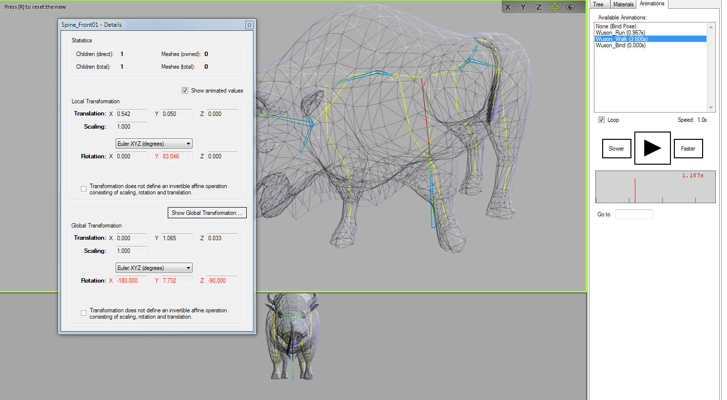 • Anzeige des Animationsskelettes