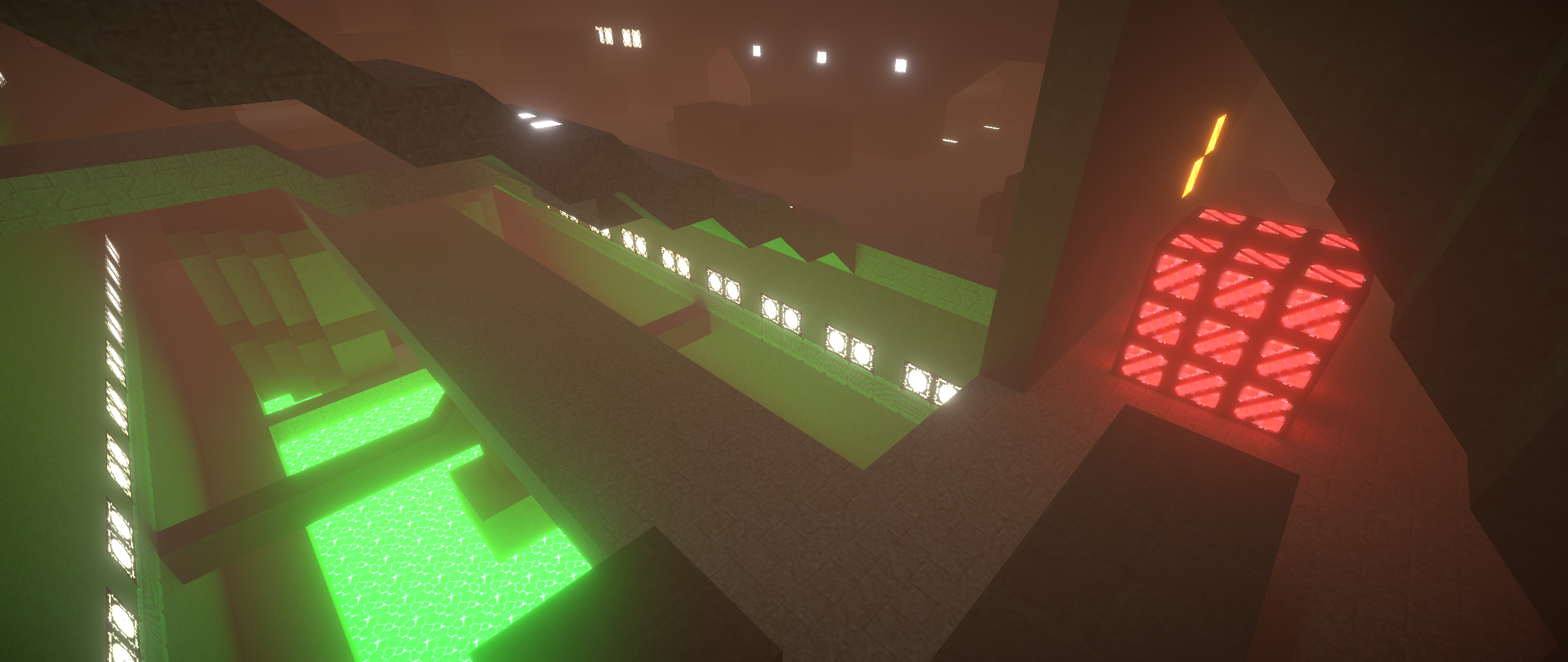 Ich habe es nur schnell als Mesh exportiert und in ein neues Projekt importiert und Lightmaps drauf gebacken. Weil keine Texturkoordinaten im Export drin waren hab ich einfach einen Triplanaren Shader genommen und eine Brick-Textur benutzt. Daher vermutlich der Voxel-Look. Sollte jetzt eigentlich auch erstmal Fehler bei den Lightmaps kaschieren.
