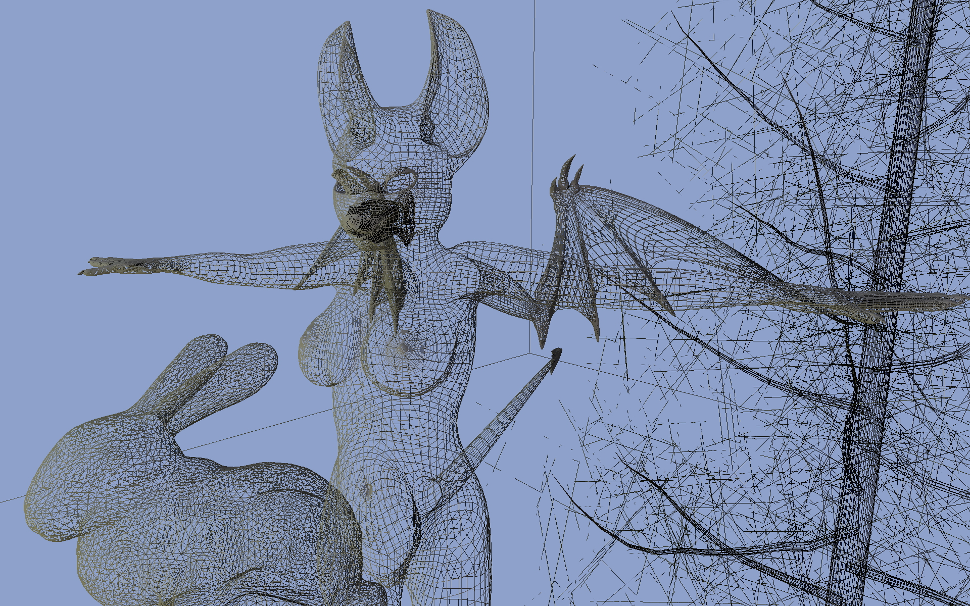 Wie man sieht sind die Modelle garnicht so detailliert. Die Fledermaus schlägt wie immer, mit 108k Polygonen zu buche.